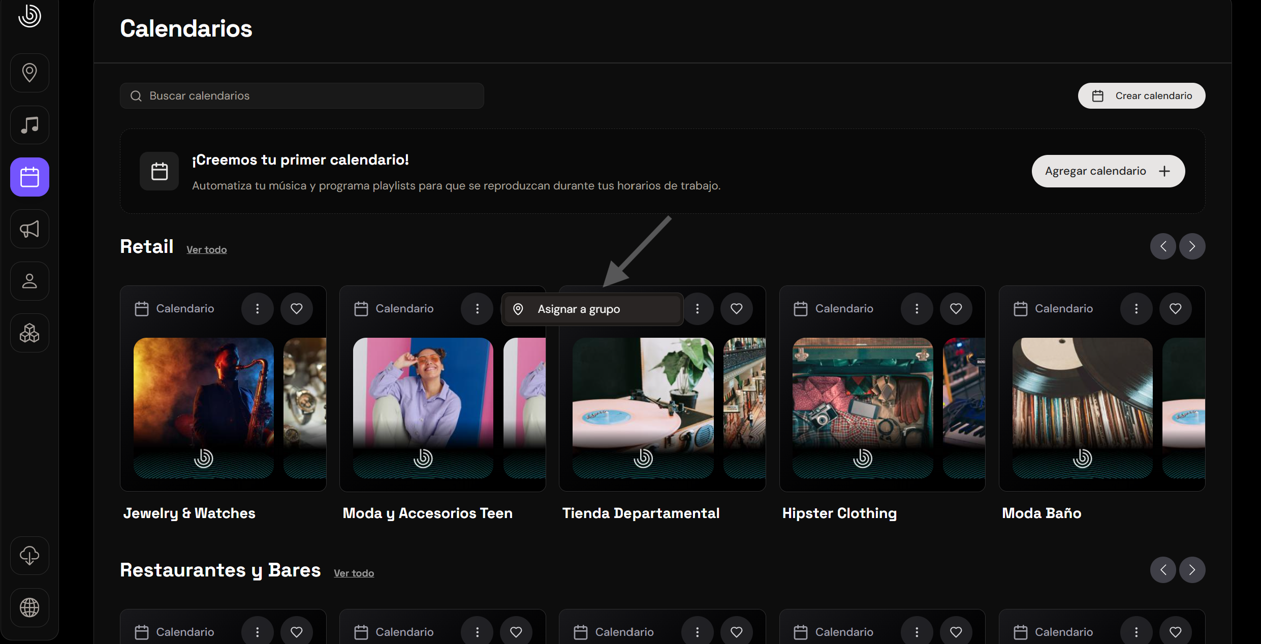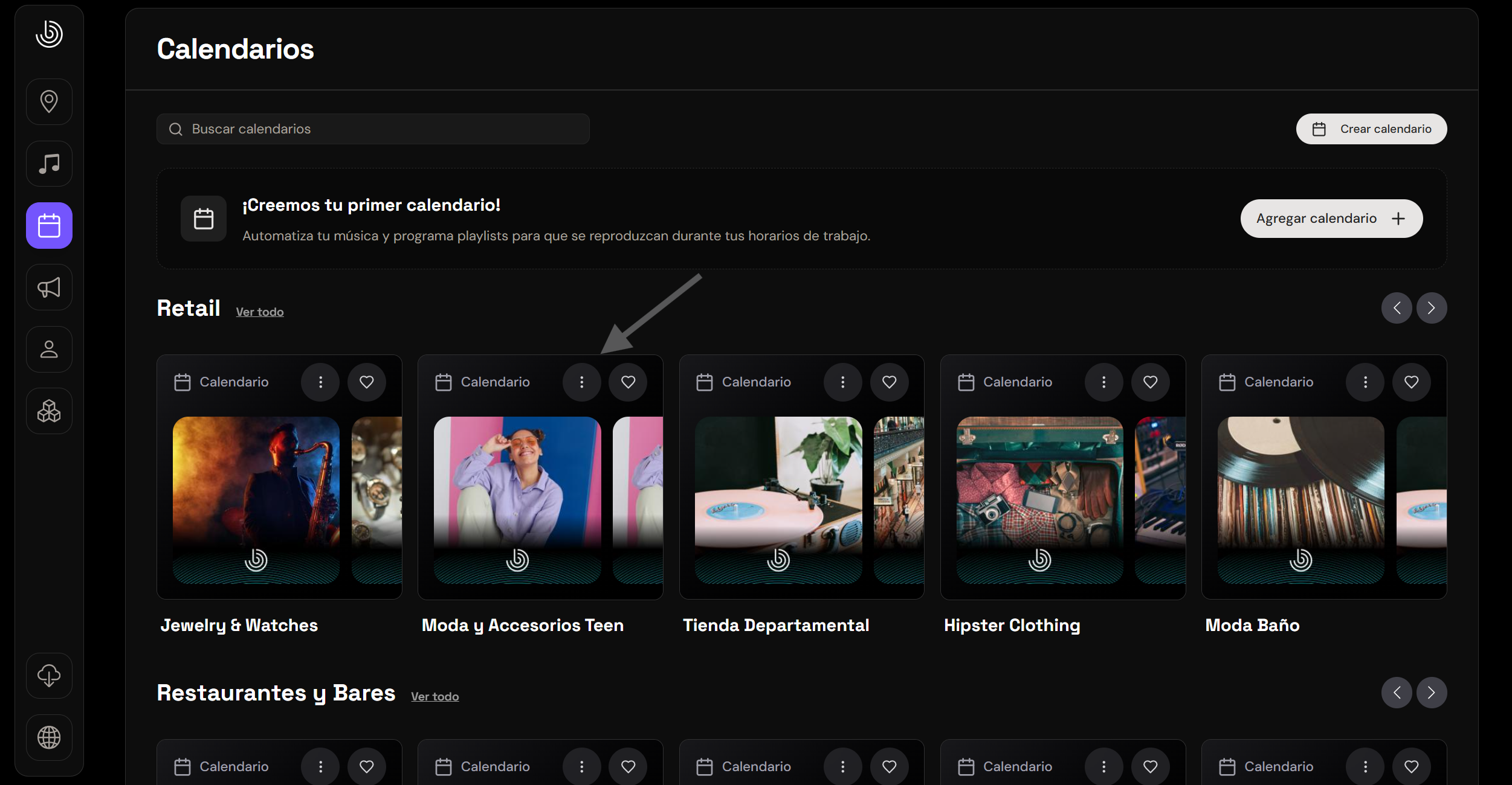 1️⃣ From the "Calendars" button, you need to click on the 3 dots on the playlist, as shown below: