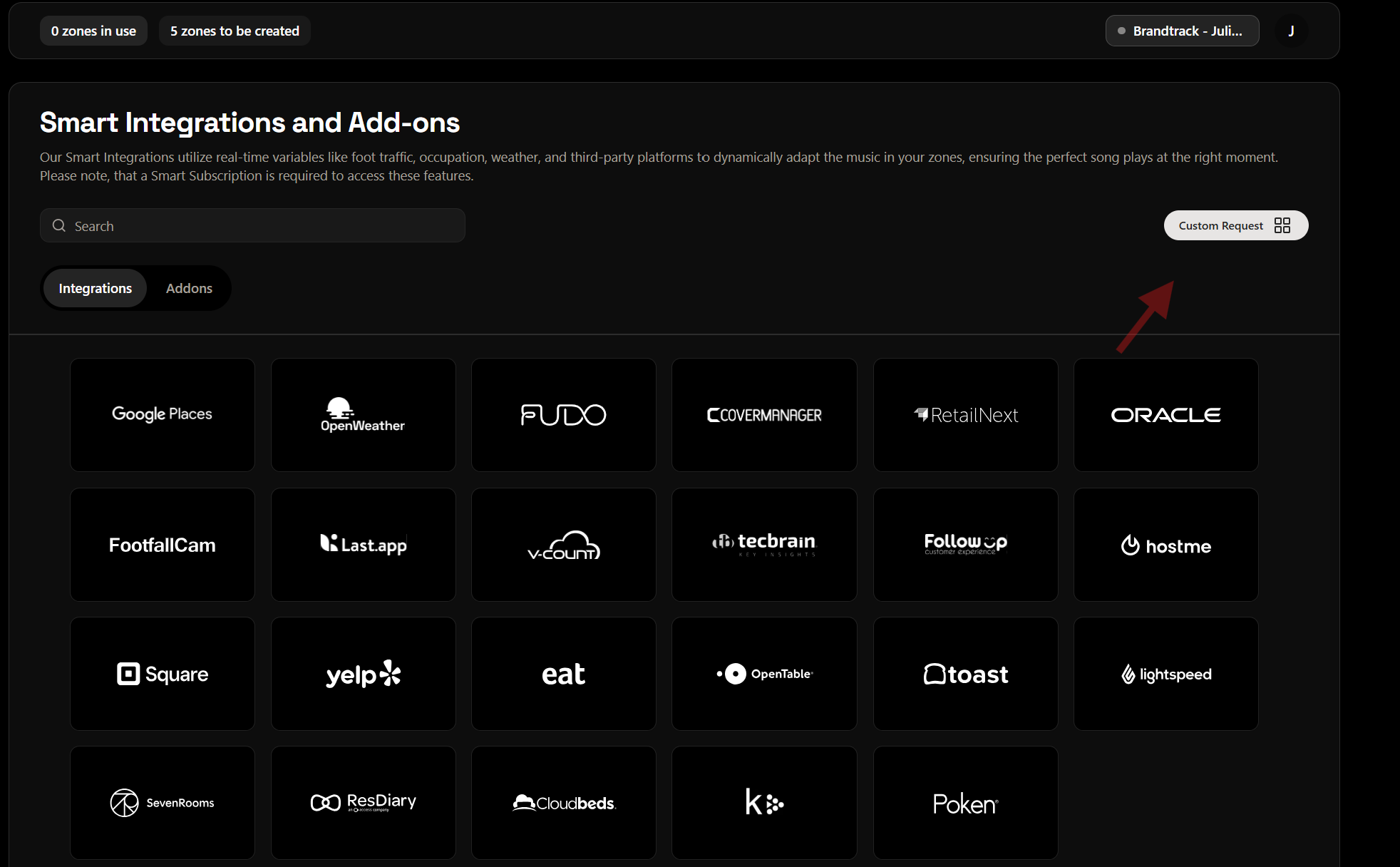 Smart Playlists are intelligent playlists that adapt your business's music in real time according to external data and connected integrations. Unlike a traditional playlist, they can automatically change the music style based on variables such as occupancy, reservations, people flow, weather, or schedule.