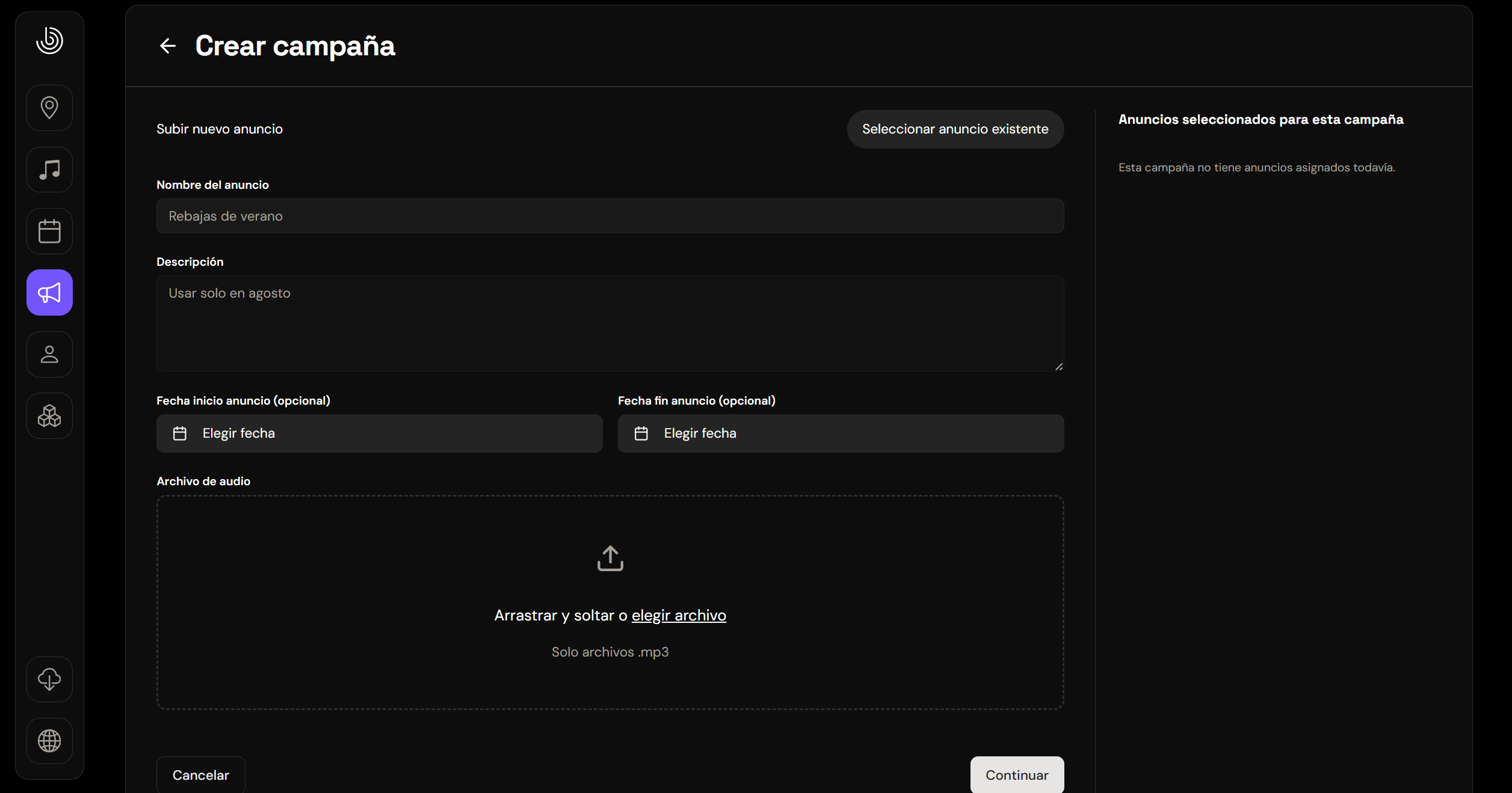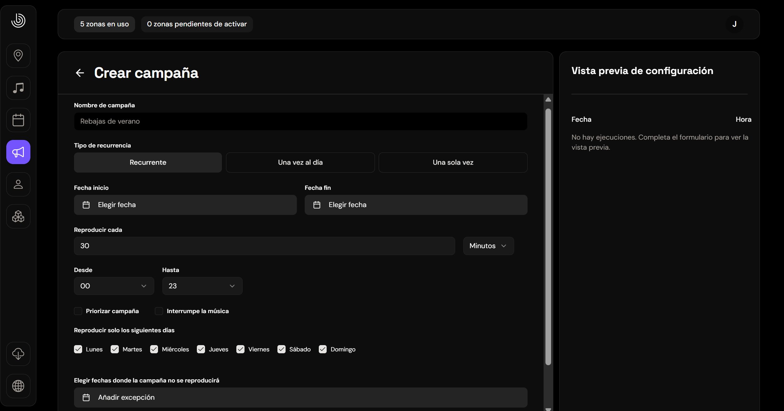 Si querés que la campaña suene indefinidamente, dejá este campo vacío.