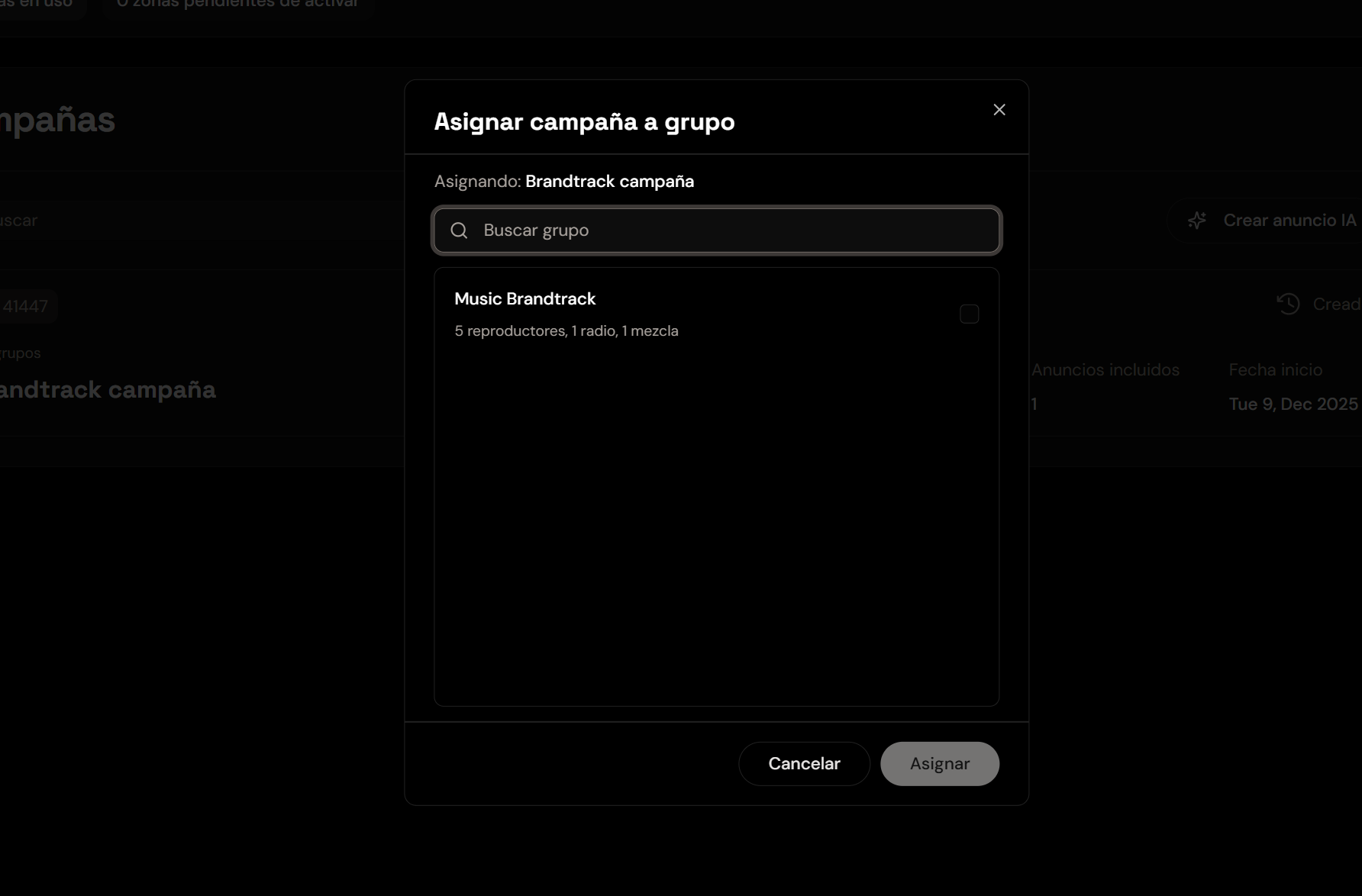Si ya generaste tu anuncio con AI, creaste la campaña y solo queres asignarla a la zona/s donde queres que suene, aquí te enseñamos cómo hacerlo: